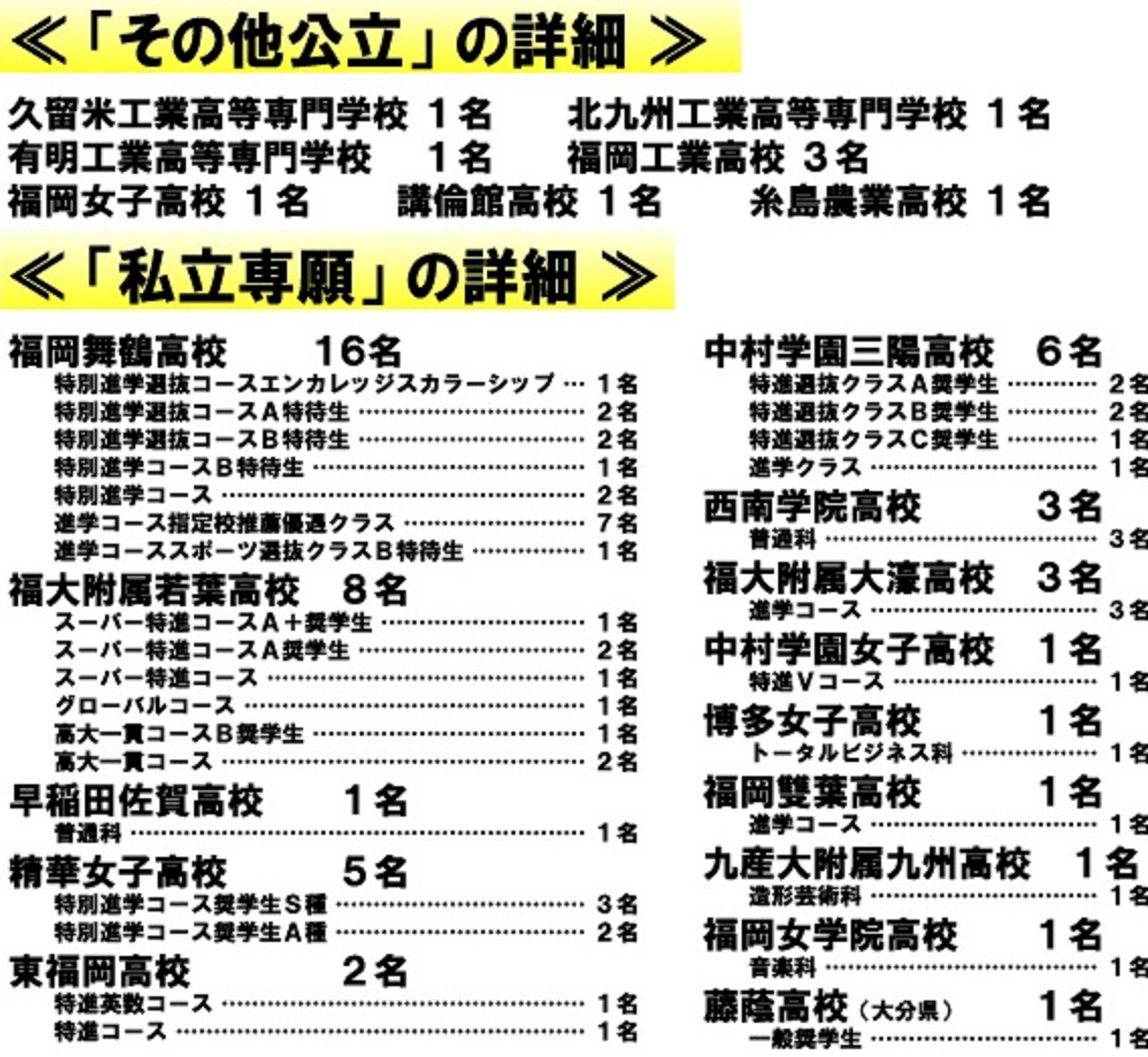 ・福岡舞鶴 特進選抜 3名/3名中(A特待2名・B特待1名)